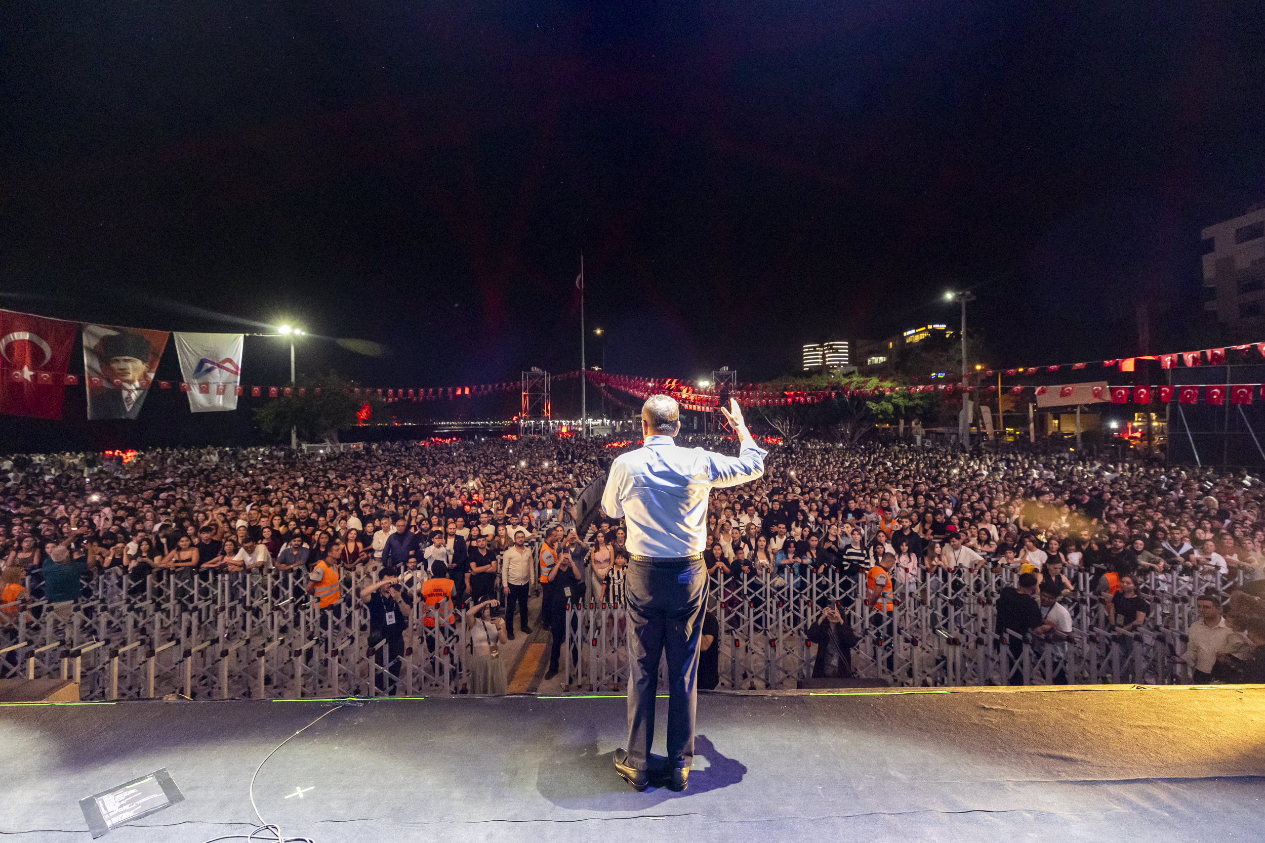 Konser öncesi sahneye çıkan Mersin Büyükşehir Belediye Başkanı ve TBB Başkan Vekili Vahap Seçer, gençlere kısa ama güçlü mesajlar verdi:
