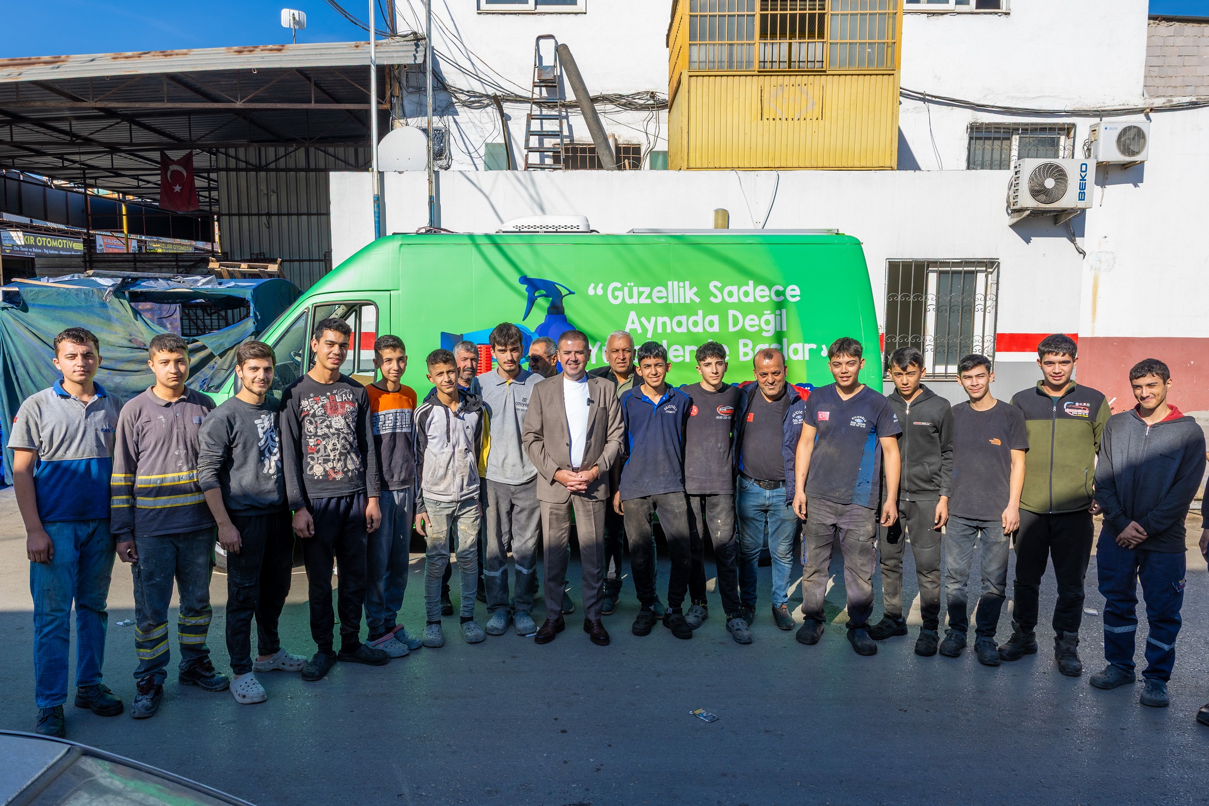 Mezitli Belediyesi’nin mobil kuaför aracı, sanayi sitesinde emekçi ve çıraklara ücretsiz hizmet vererek sosyal belediyeciliğin sahadaki gücünü bir kez daha gösterdi.