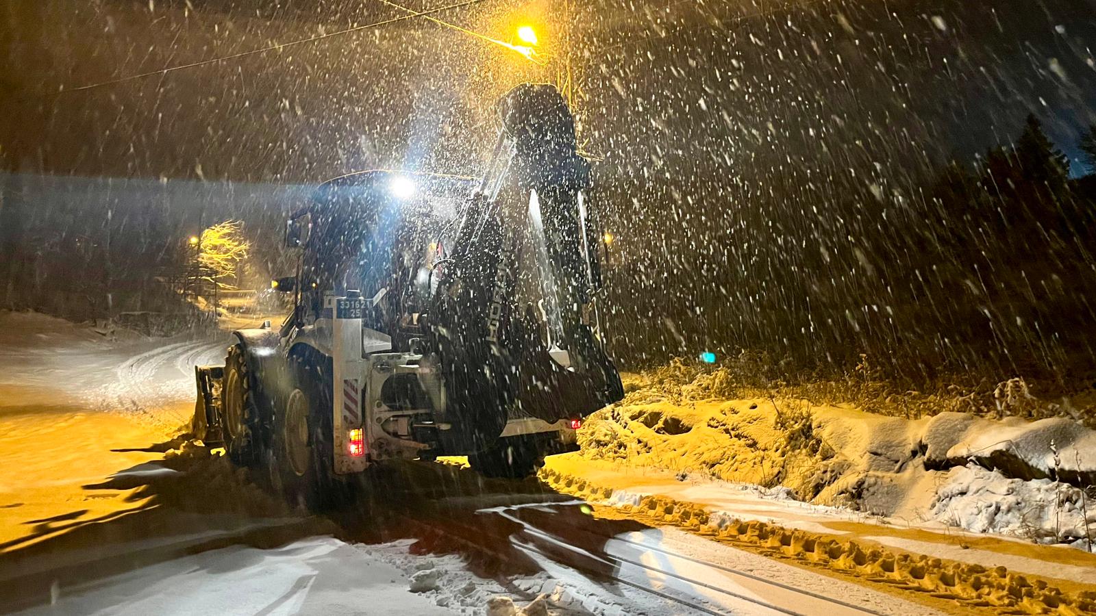 Yoğun mesai sırasında mahsur kalan vatandaşlara da yardım eden ekipler, güvenli ulaşımın kesintisiz devam etmesi için kar küreme ve tuzlama çalışmalarını sürdürüyor.