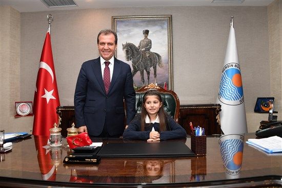 Mersin Büyükşehir Belediye Başkanı Vahap Seçer, 23 Nisan Ulusal Egemenlik ve Çocuk Bayramı’nda başkanlık koltuğunu Muhittin Develi İlkokulu 4. sınıf öğrencisi v...