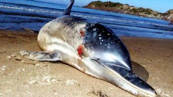 Ortakent- Yahşi Mahallesi sahilinde, dün saat 20.00 sıralarında, dalgalarla sürüklenen ölü yunus, kıyıya vurdu....